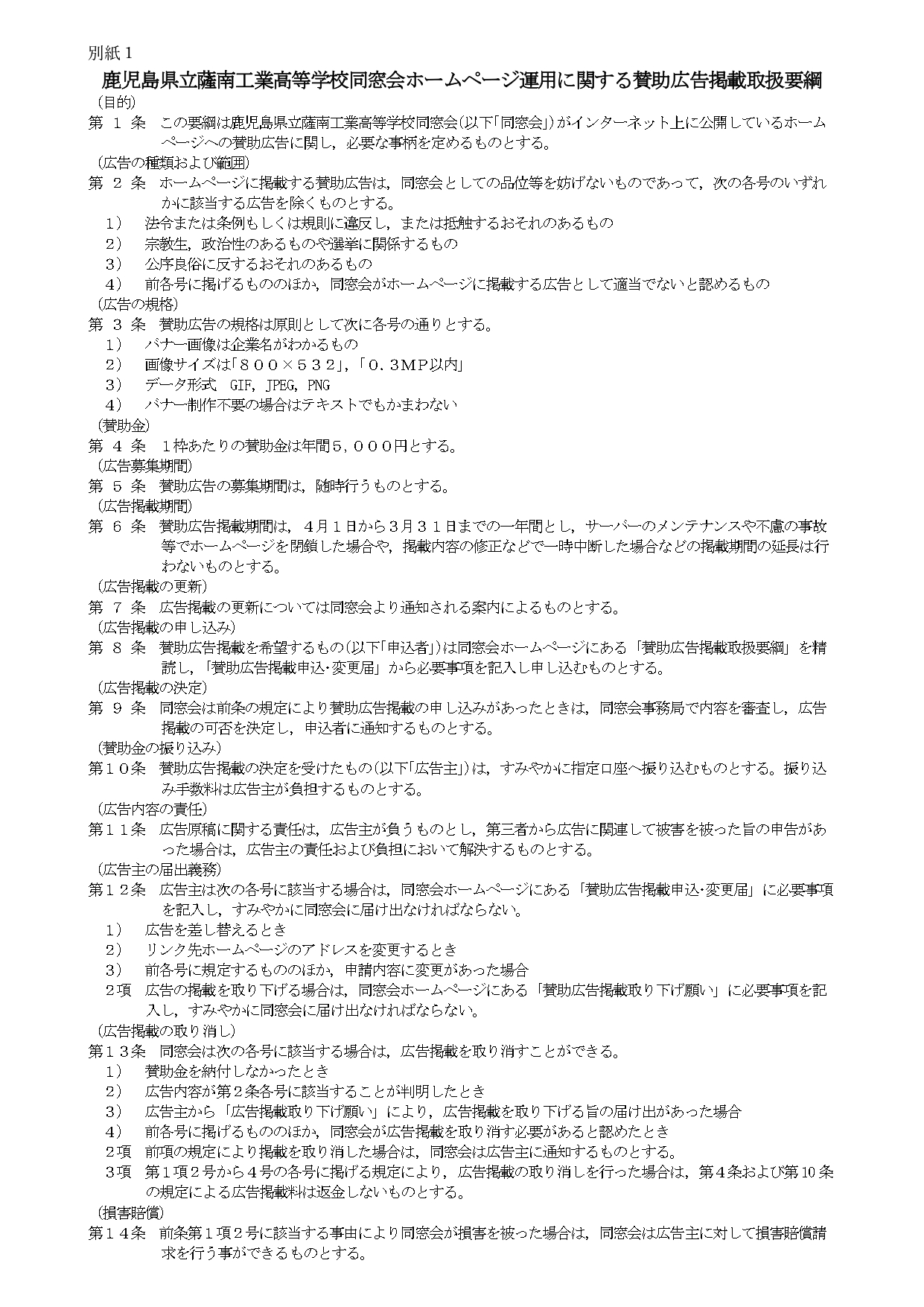 同窓会ホームページ賛助広告掲載のお願い。